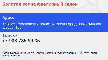 Золотая волна, ювелирный салон по адресу 143185, Московская область, Звенигород, Нахабинское шоссе, 15а в дальнейшем Организация, размещена в следующих категориях: