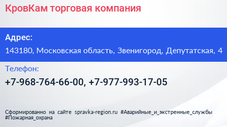 КровКам, торговая компания по адресу 143180, Московская область, Звенигород, Депутатская, 4 в дальнейшем Организация, размещена в следующих категориях: