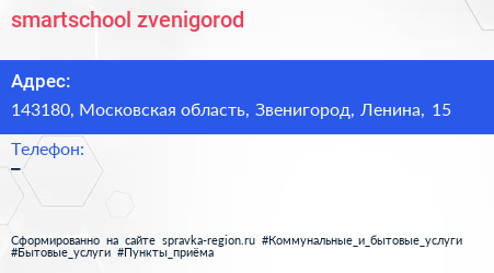 smartschool.zvenigorod по адресу 143180, Московская область, Звенигород, Ленина, 15 в дальнейшем Организация, размещена в следующих категориях: