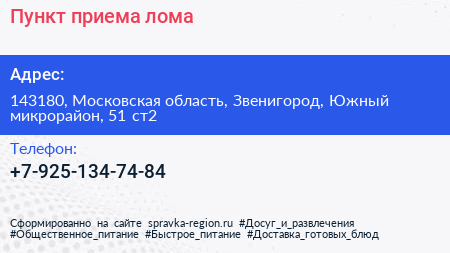 Пункт приема лома по адресу 143180, Московская область, Звенигород, Южный микрорайон, 51 ст2 в дальнейшем Организация, размещена в следующих категориях: