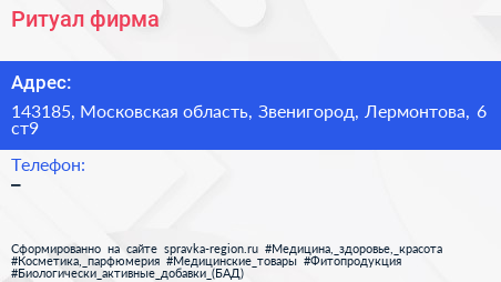 Ритуал, фирма по адресу 143185, Московская область, Звенигород, Лермонтова, 6 ст9 в дальнейшем Организация, размещена в следующих категориях: