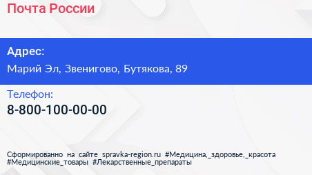 Почта России по адресу Марий Эл, Звенигово, Бутякова, 89 в дальнейшем Организация, размещена в следующих категориях: