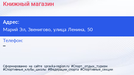 Книжный магазин по адресу Марий Эл, Звенигово, улица Ленина, 50 в дальнейшем Организация, размещена в следующих категориях: