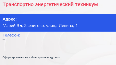 Транспортно-энергетический техникум по адресу Марий Эл, Звенигово, улица Ленина, 1 в дальнейшем Организация, размещена в следующих категориях: