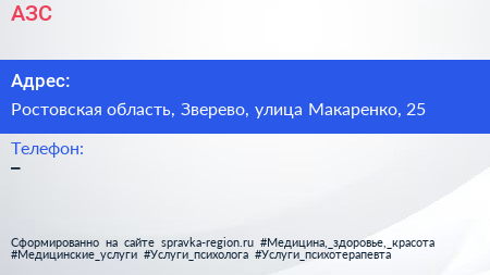 АЗС по адресу Ростовская область, Зверево, улица Макаренко, 25 в дальнейшем Организация, размещена в следующих категориях: