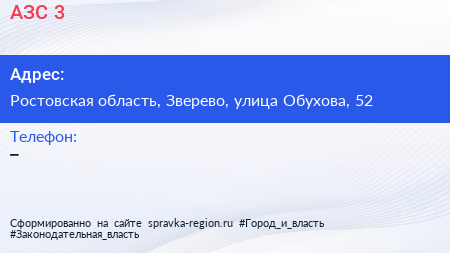 АЗС №3 по адресу Ростовская область, Зверево, улица Обухова, 52 в дальнейшем Организация, размещена в следующих категориях: