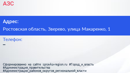 АЗС по адресу Ростовская область, Зверево, улица Макаренко, 1 в дальнейшем Организация, размещена в следующих категориях: